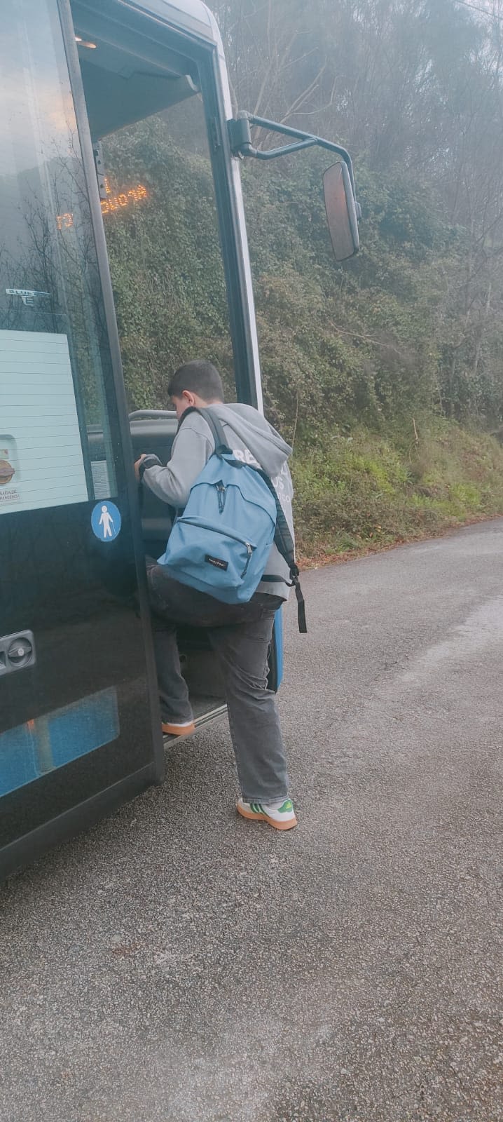 Gonçalo apanha o autocarro de transporte municipal para a escola