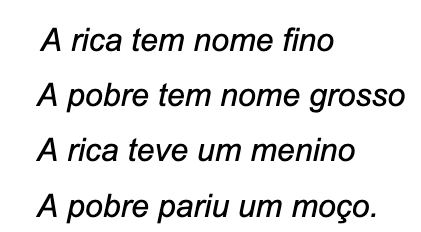 As desigualdades sociais eram cantadas de modo a dar a entender a ausência de qualquer consciência de classe, como se em vez de descontentamento e revolta houvesse apenas resignação. Não era o trabalho duro, de sol a sol, o destino daquela gente?... Como se toda a engrenagem fosse movida por uma espécie de direito natural, cuja divisão social estava pré-determinada à nascença.