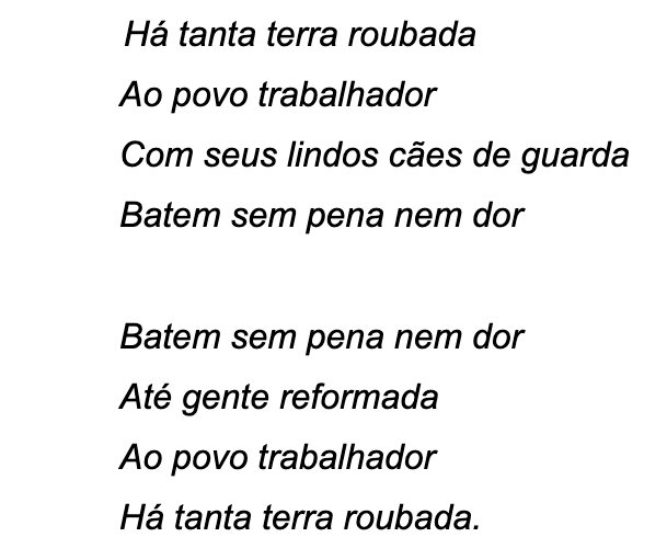 O poema, da autoria de Amaro Santana, era uma cantiga de luta e resistência, como outras, de resto, que o coletivo ia criando e cantando, a partir da realidade concreta do dia a dia de um Alentejo em brasa e em que a ação da GNR, em regra sempre contra os trabalhadores do campo, era criticada no repertório de “Flores de Primavera”: