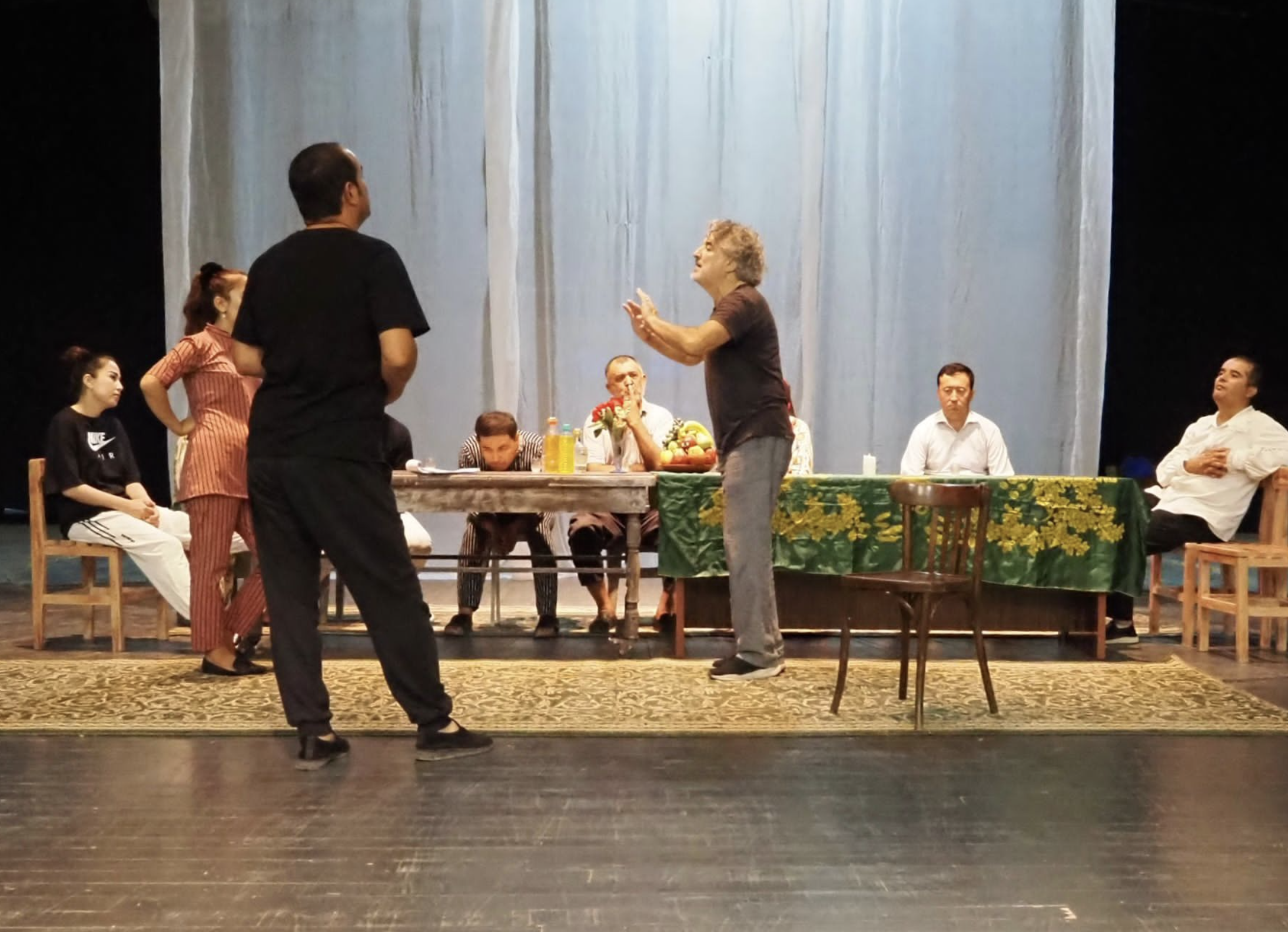 Rui Madeira dirigindo um ensaio no Teatro Nacional da Região de Qasqhadarya / Karshi / Uzbequistão