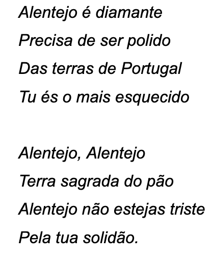 O diálogo pula e avança entre as confidências de Maria Teresa — “Às vezes, levo uma noite a compor uma música, sempre de cor, nunca as escrevo” — e de Margarida Matias, natural de Arouca, distrito de Aveiro, que canta sem esconder ou disfarçar o sotaque arouquense, embora diga: “Após 52 anos de vida em Ervidel já me sinto mais que alentejana”.
